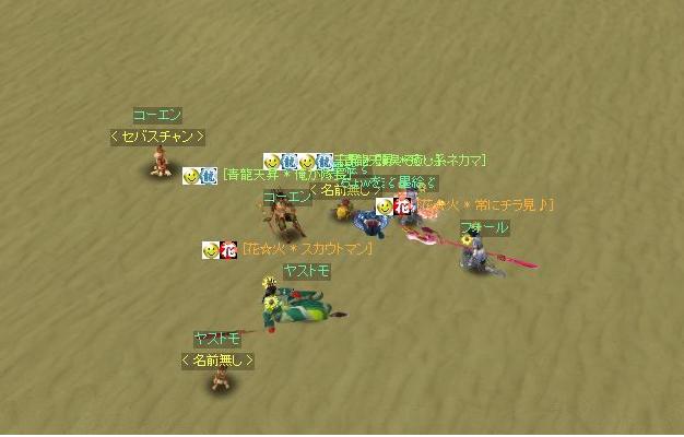 89のふーさんと90の盗賊との争いなので、ヤストモのキャラは範囲のとばっちりだけで瀕死なのです。