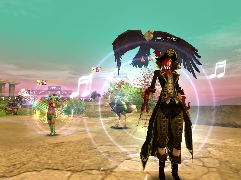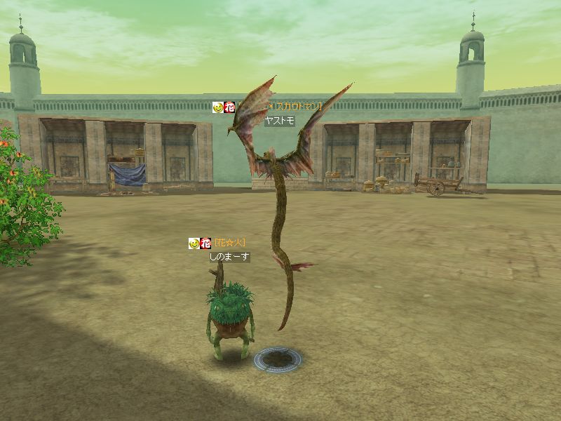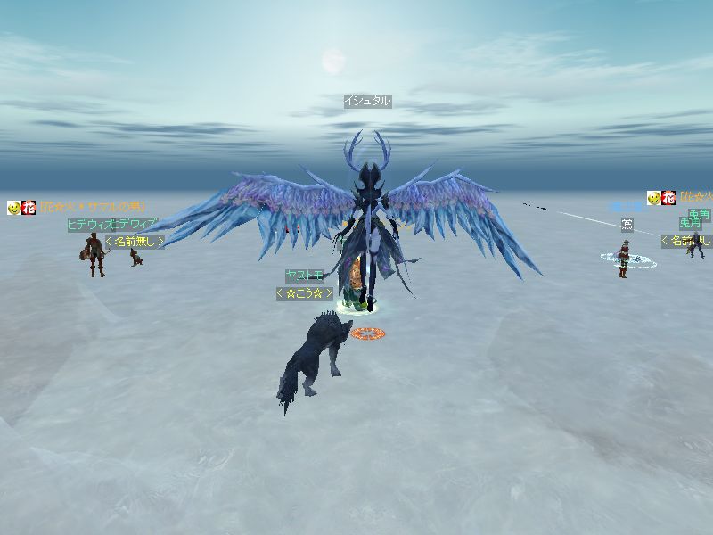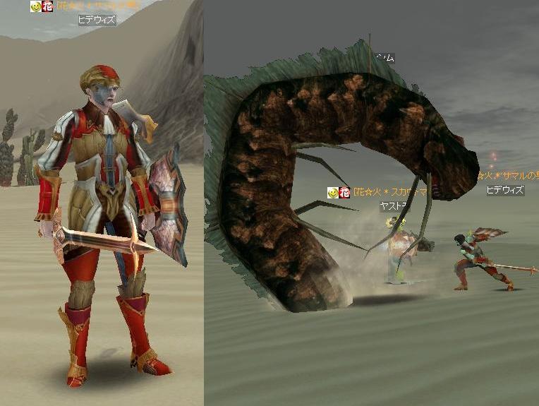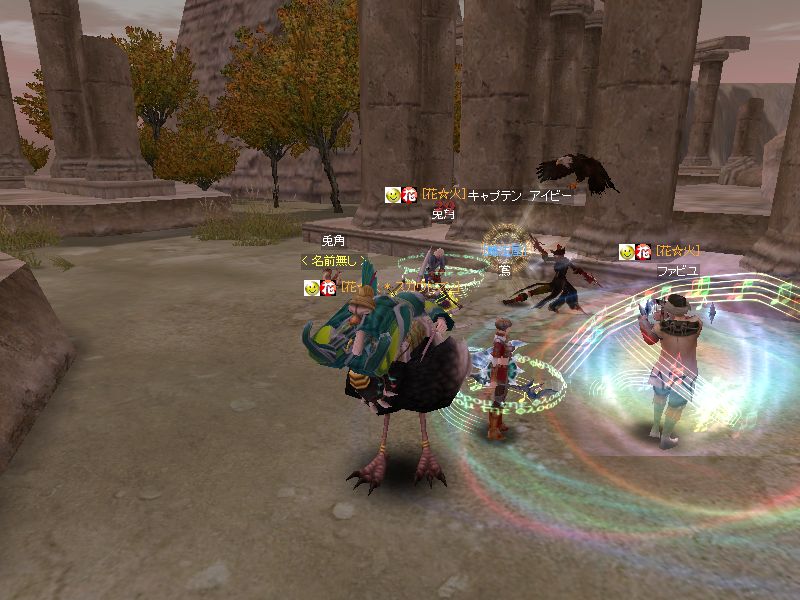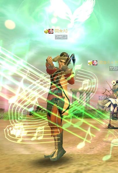 ヤストモで到着すると、死んでる兎角さん。クレリックを呼びよせて起こし、弓で遠くからたたいてもらっているところに、ヒデウィズさん(レベル56だったかな)も来て花☆火で独占してたのですが・・・